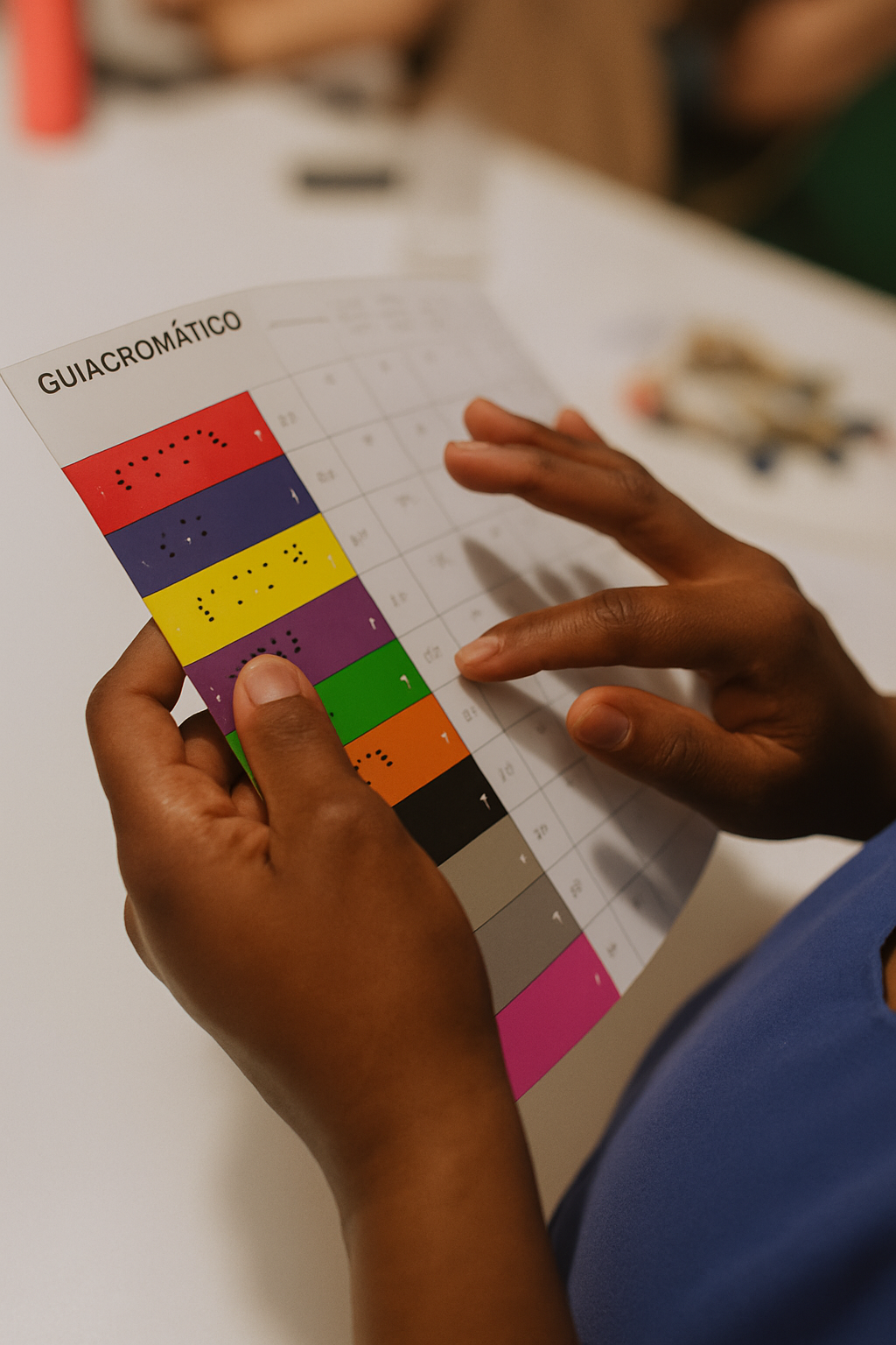 São 94 cores codificadas, incluindo as metalizadas, que podem ser identificadas de forma simples pelas pessoas com deficiência visual, cegas ou com baixa visão.