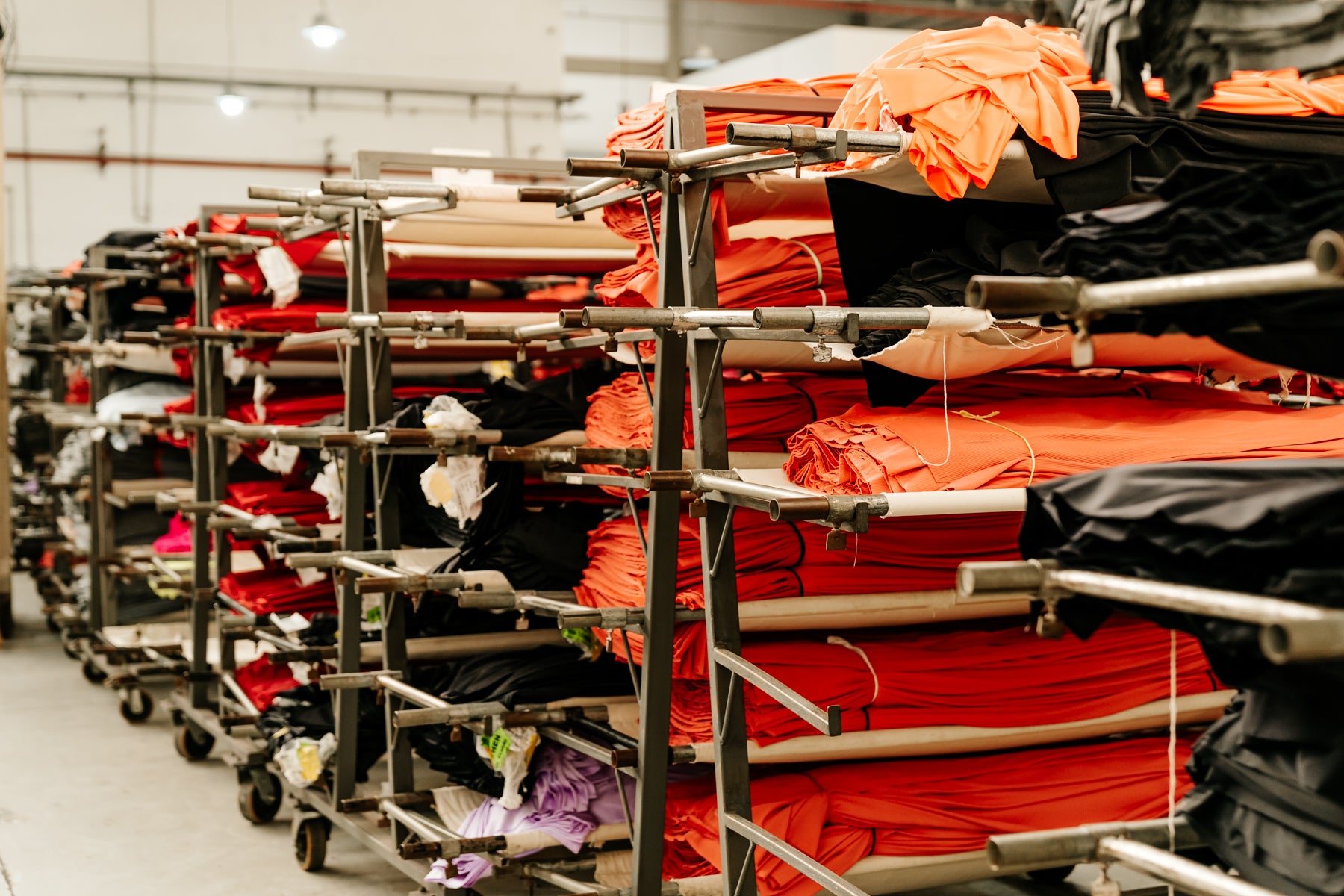 E essa magia só acontece com o talento das nossas costureiras. Tecidos sintéticos, quase como malhas vivas, pedem um manejo sensível e experiente. Cada mão que passa por ali deixa sua marca no resultado de cada peça.