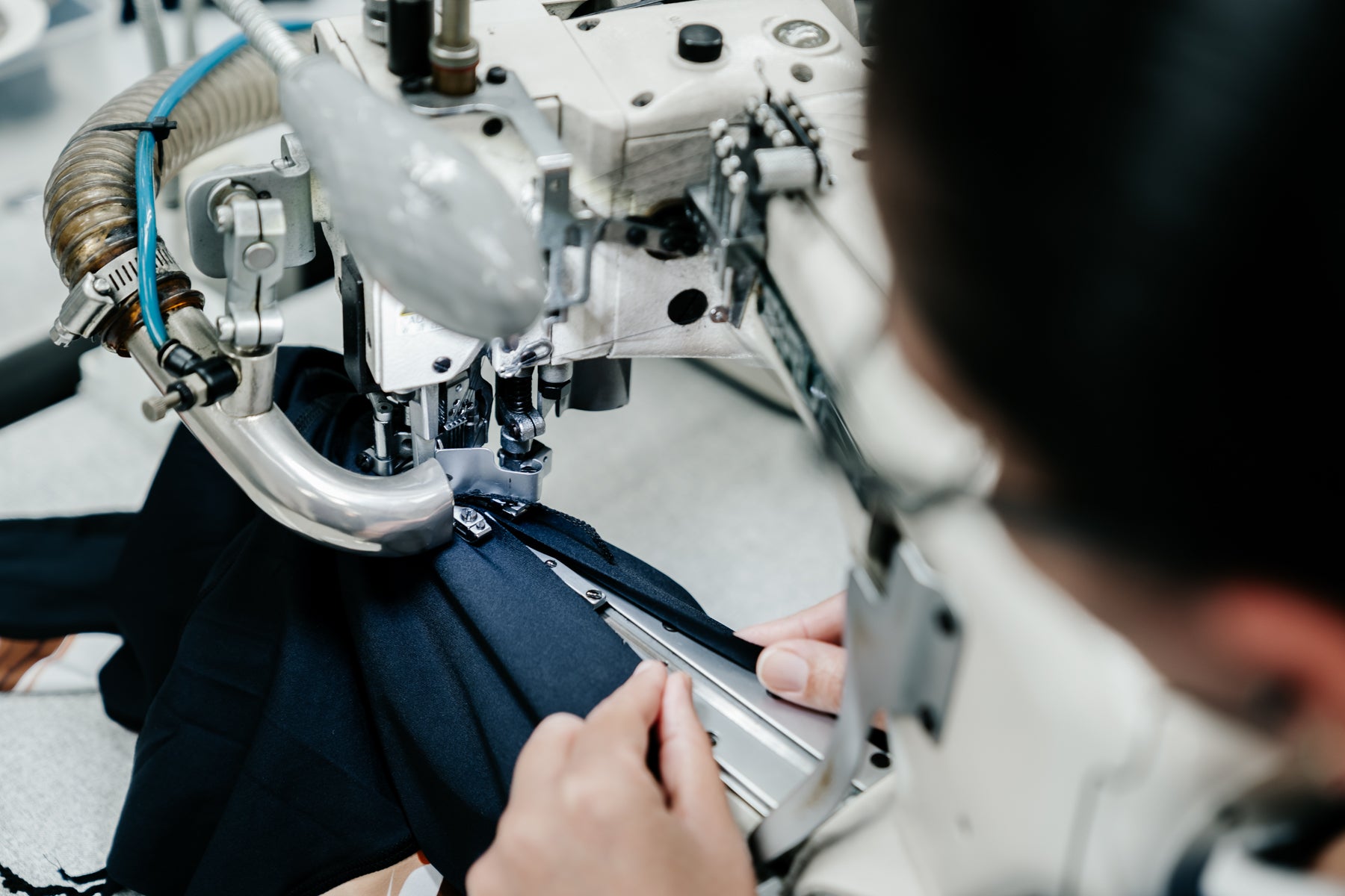 Aqui rola um match: manualidade da costura e tecnologia das máquinas.