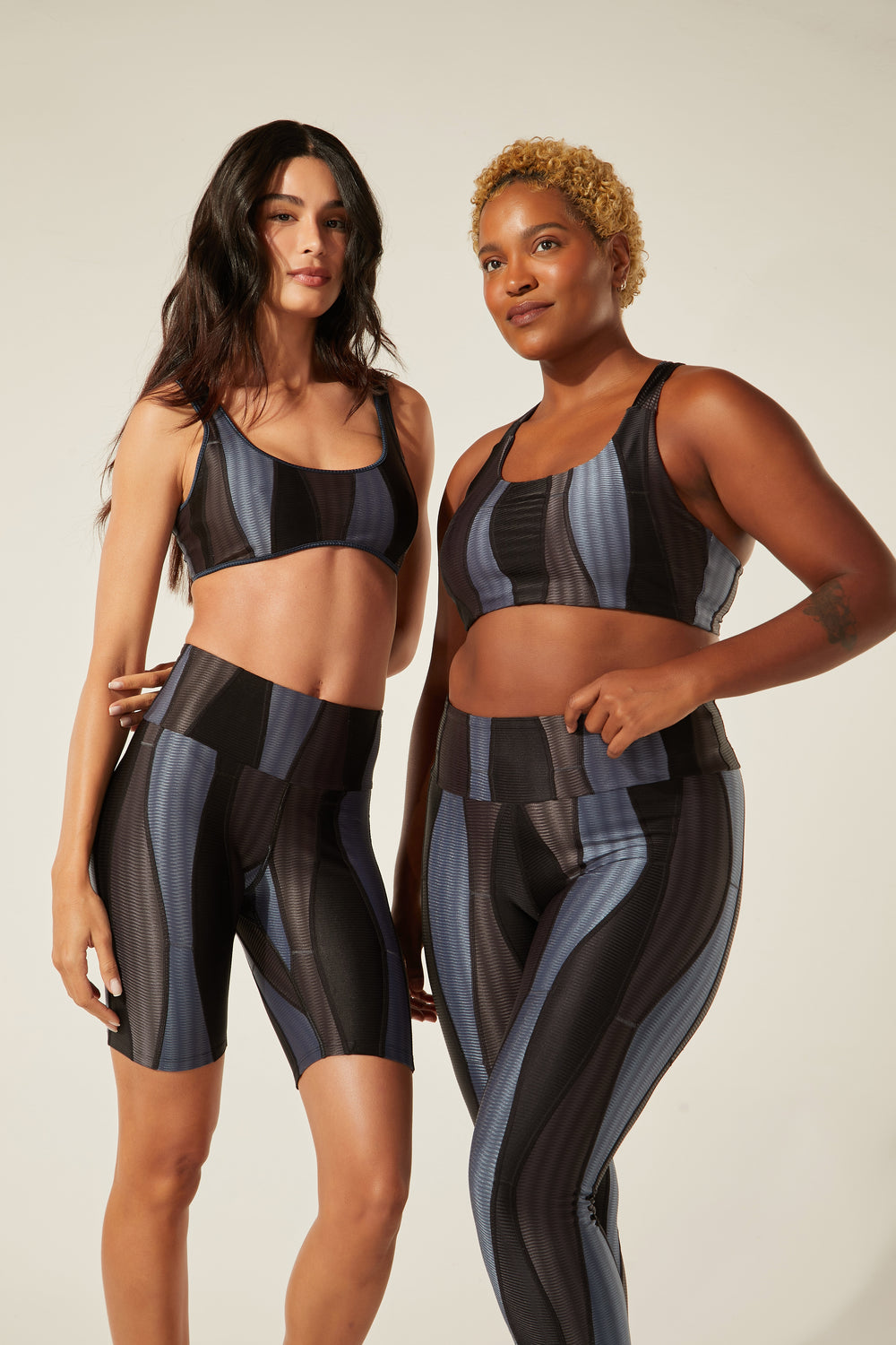 Modo produtivo: UPC (upcycling) com tecido ORICLA ELÁSTICO. Retalhos sobrantes e selecionados de grandes produções da moda fitness são transformados em novos rolos de tecido com costuras tecnológicas que não marcam a pele. Cada criação nasce de um processo intenso que envolve técnica, sensibilidade e muita criatividade! No upcycling, o investimento é humano — está no tempo e na habilidade de quem costura, e não em tecidos novos. ORICLA ELÁSTICO, desenvolvido em parceria entre a Confecções T.Christina e a designer Agustina Comas, foi premiado pelo Fashion Futures 2021 na categoria Inovação e Tecnologia.