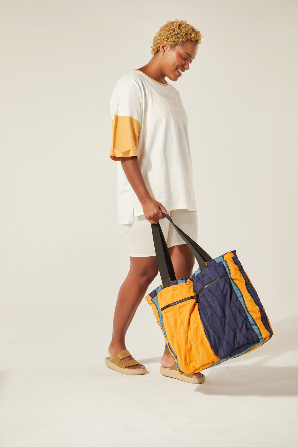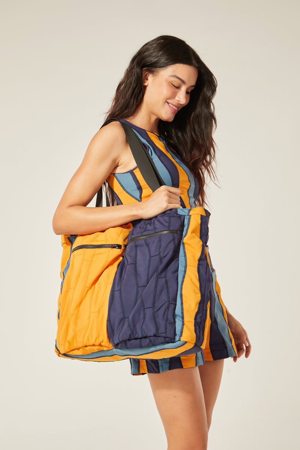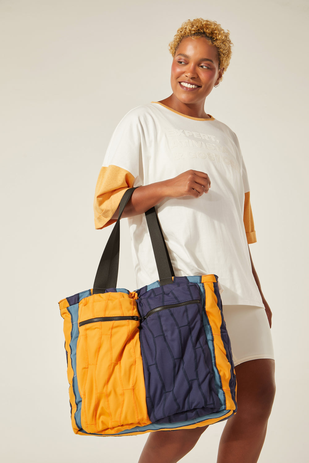 Pra quem vive imensamente, uma bolsona de respeito! Tem super bolsos externos, compartimento interno pra separar as miudezas, alças largas com fecho, pra não ficar caindo, e o zíper trator, mara, fácil de abrir e fechar! Cabe tudo: tênis do treino, livro da vez, computador, roupa extra, as comprinhas do mercado e ainda a nossa nécessaire, a necessária. Feita com tecido premiado e criada para levar tudo, mesmo!