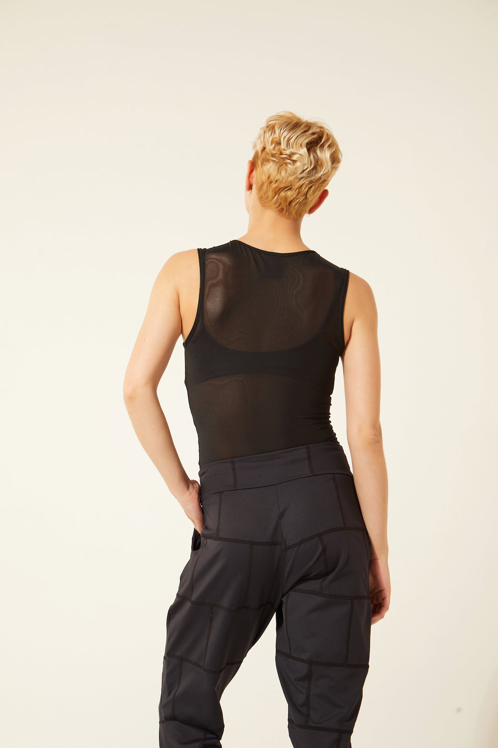 De tule com transparencia, esse cropped tem uma modelagem super gostosa: é curto na medida e tem uma cava que deixa aquela sensação de plenitude. Decote alto canoa para arrematar o design pensado pra você causar pra valer e com conforto!