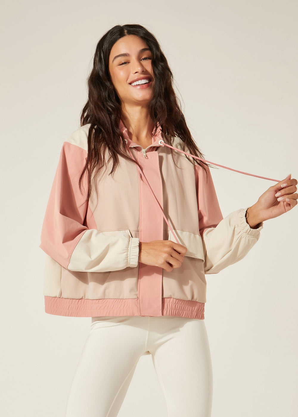 Nossa jaqueta é mais do que um corta-vento, é um casaquinho leve, perfeito pra meia-estação ou pras primeiras horas da manhã. Tem bolsos frontais, zíper trator, pra facilitar o abre e fecha, e pequenos charmes. O cadarço da gola, que você pode usar fechada ou aberta, e os elásticos nas mangas fortalecem o styling. E a cereja do bolo: os recortes de tecidos diferentes em cores que amamos são o resultado da nossa ginástica mental para valorizar materiais sobrantes e selecionados. Detalhe do detalhe: a dança das cores também nas linhas do pesponto combinando com cada recorte. É loka!