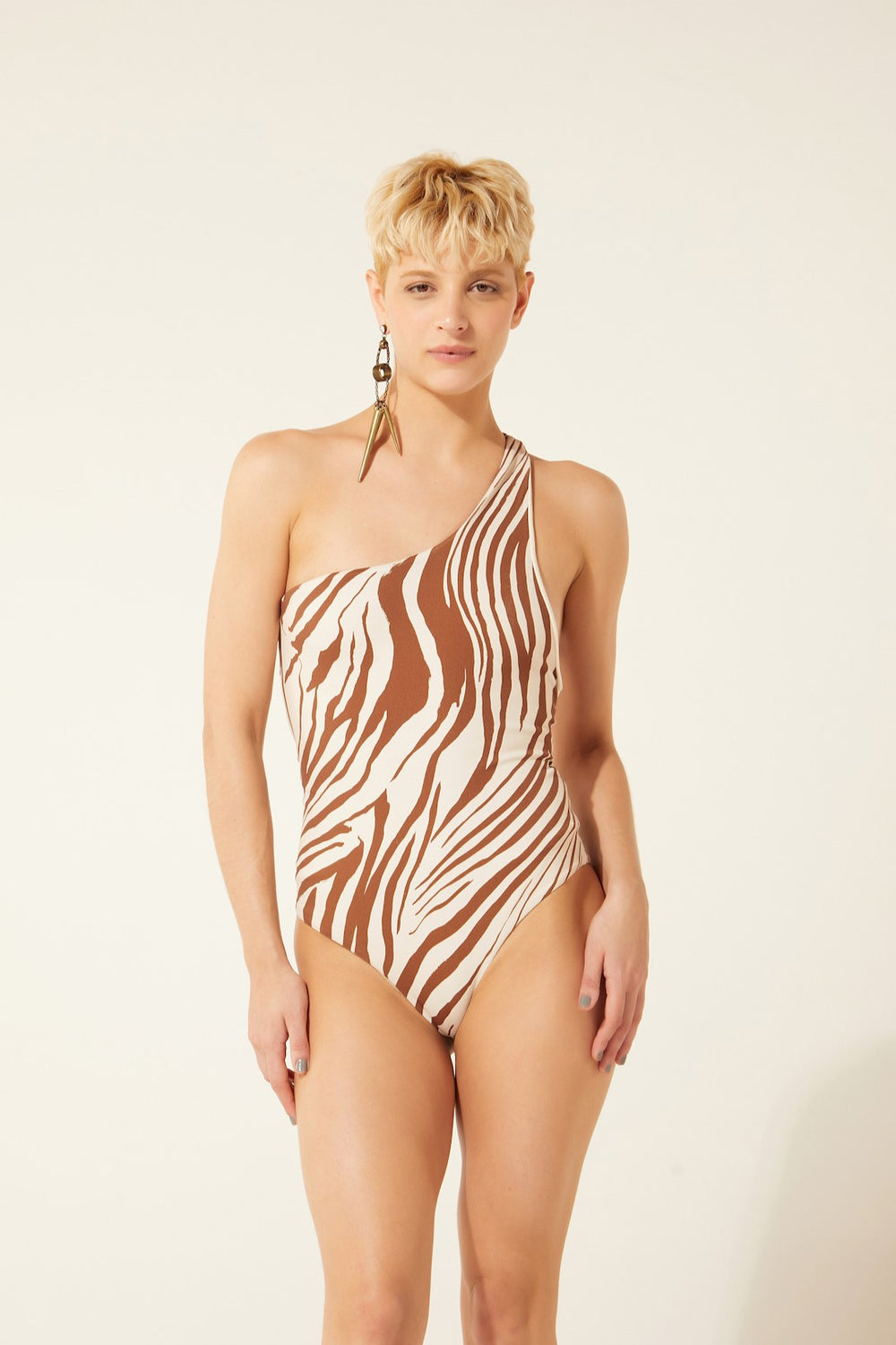 Totalmente desviante, essa modelagem deusa foi feita pra valorizar suas curvas! Tem um ombro só e super decote nas costas, alça segura e nem tão cavado assim, porque equilíbrio é tudo! Ainda é dupla face: um lado tem estampa zebrona e o outro é off white. Duas peças baphônicas em uma! É sua!
