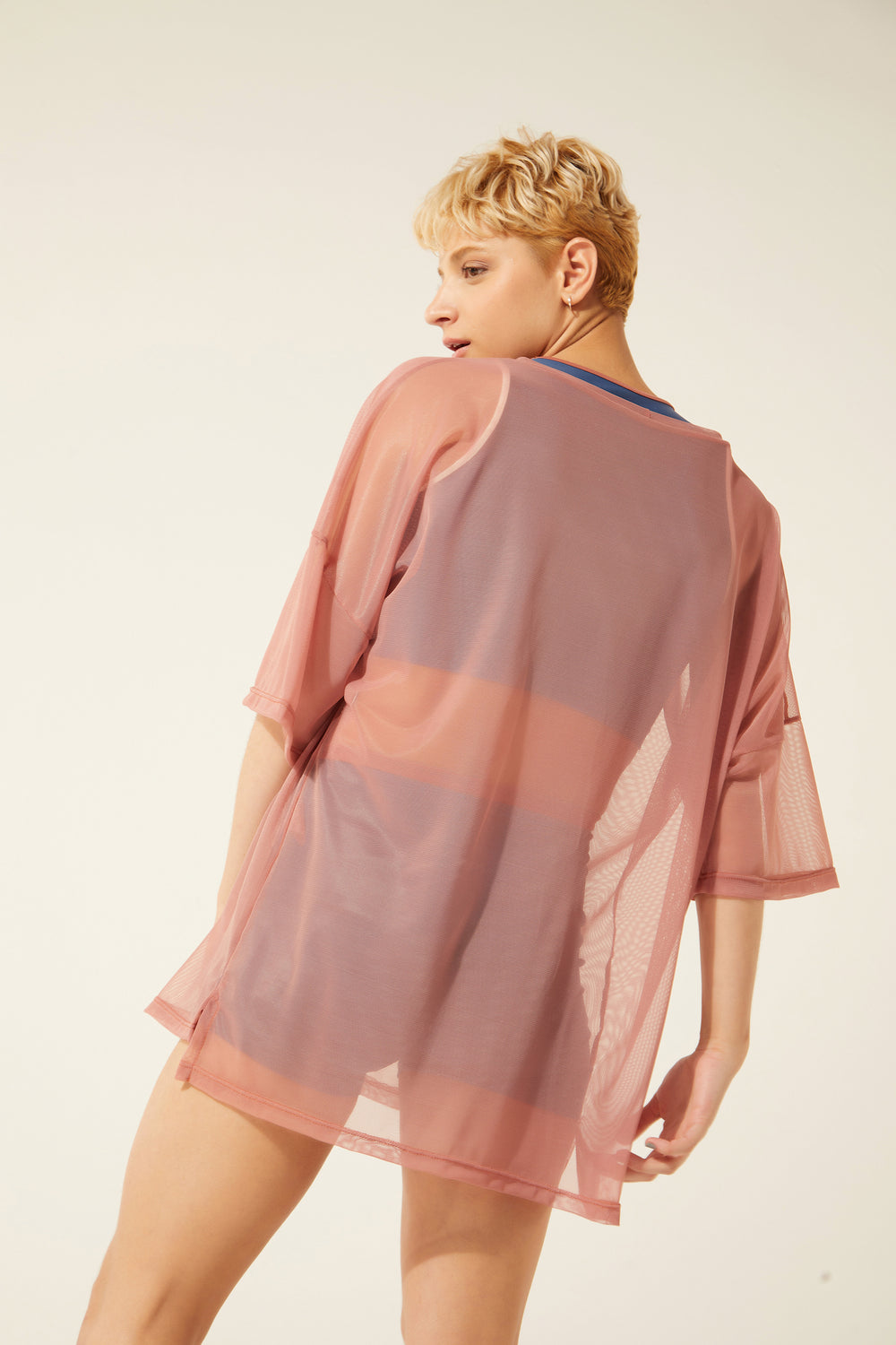 Uma blusão amplo pra usar como vestido, se quiser. Todo feito pro movimento: mangas largas e parte de trás um pouco maior. Entrega transparência e looks icônicos com mil outras peças do armário!