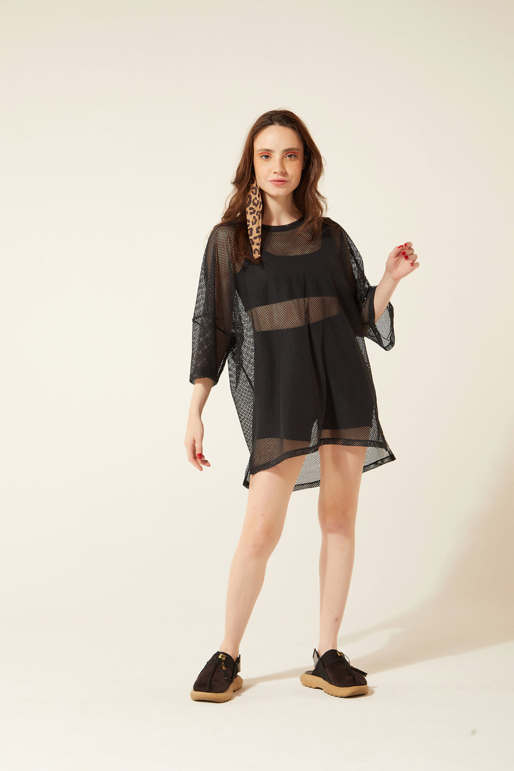 Um blusão amplo pra usar como vestido, se quiser. Todo feito pro movimento: mangas largas e parte de trás um pouco maior. Entrega transparência e looks icônicos com mil outras peças do armário!