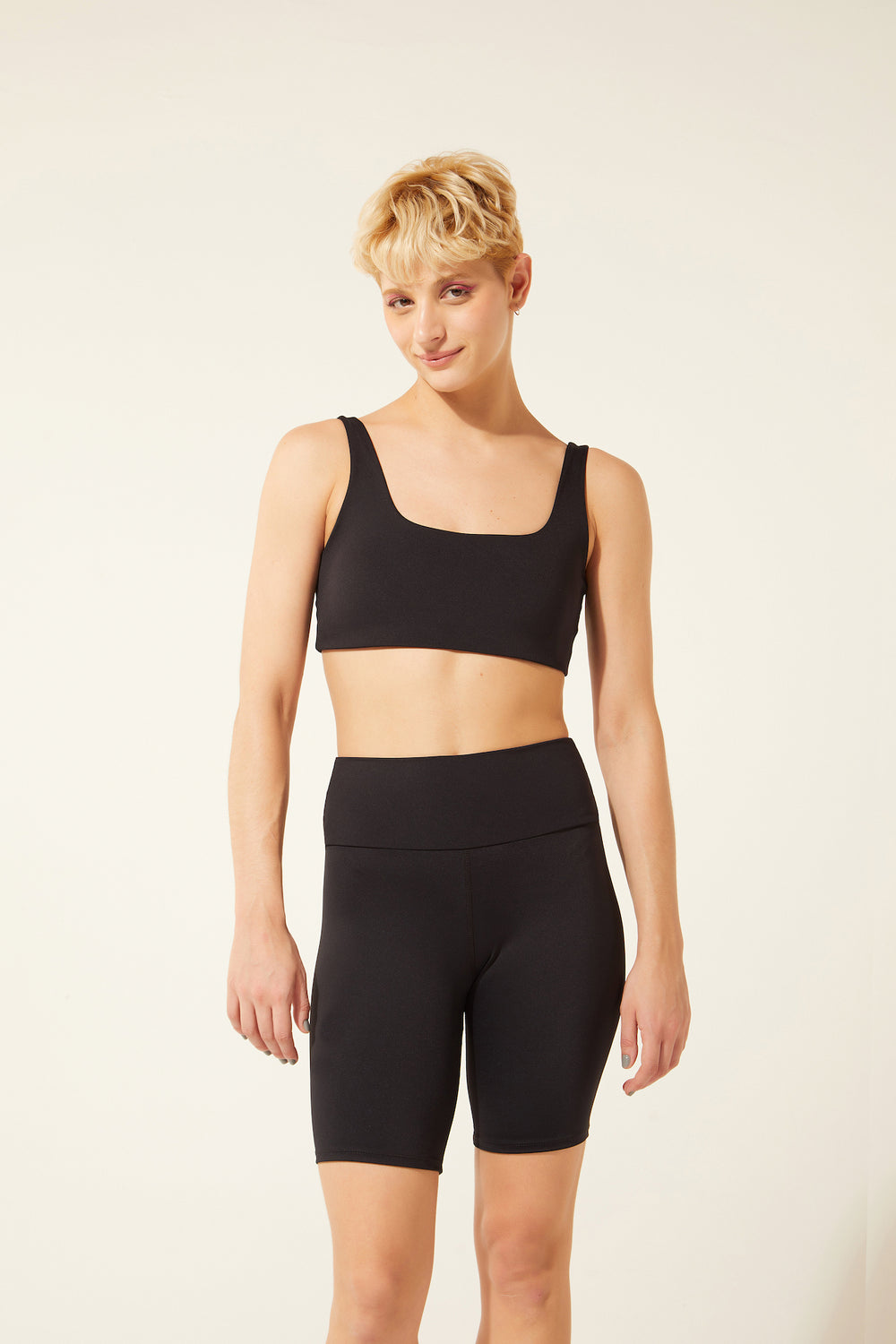 Modo produtivo: reaproveitamento de tecidos maiores, que podem ser rolos fechados ou o que chamamos de “finais de rolo”, sobras da produção industrial de roupas fitness com mais de 5m. Todos materiais que ficariam fora do circuito das grandes marcas e, por serem mara, aqui ganham uma nova oportunidade com o nosso olhar de engenharia de produto que nada descarta e tudo aproveita!